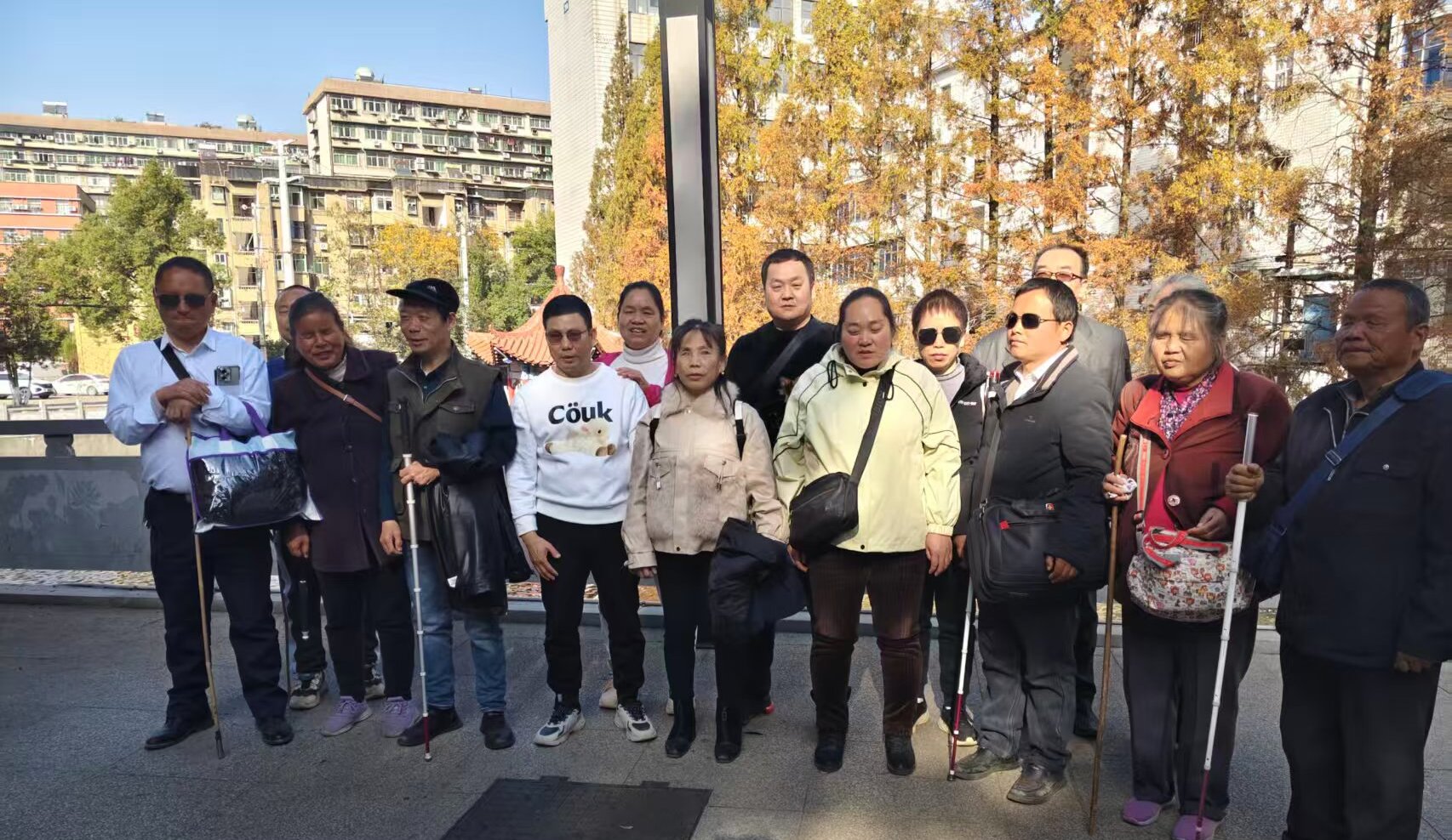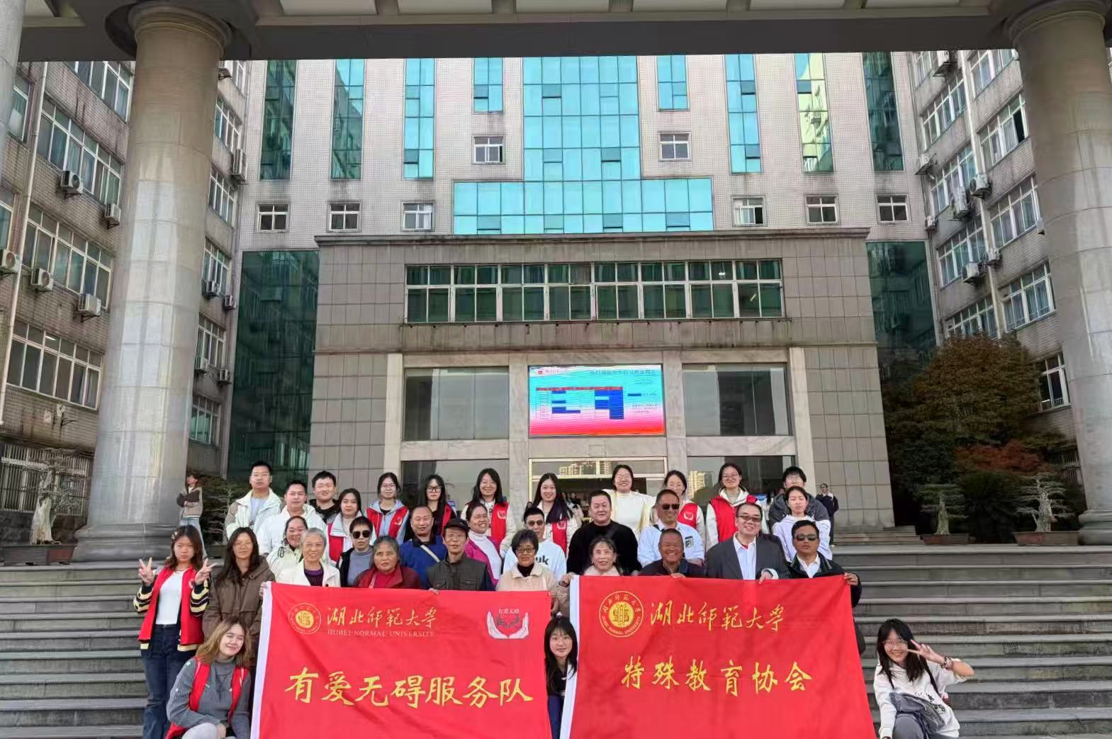 在第34个国际残疾人日来临之际,黄石市盲协联合湖北师范大学特殊教育协会“有爱无碍志愿服务队”共同举办“盲杖引前路 书香伴我行”校园体验活动。11月28日,16名视障人士在大学生志愿者的引导下走进湖北师范大学校园。