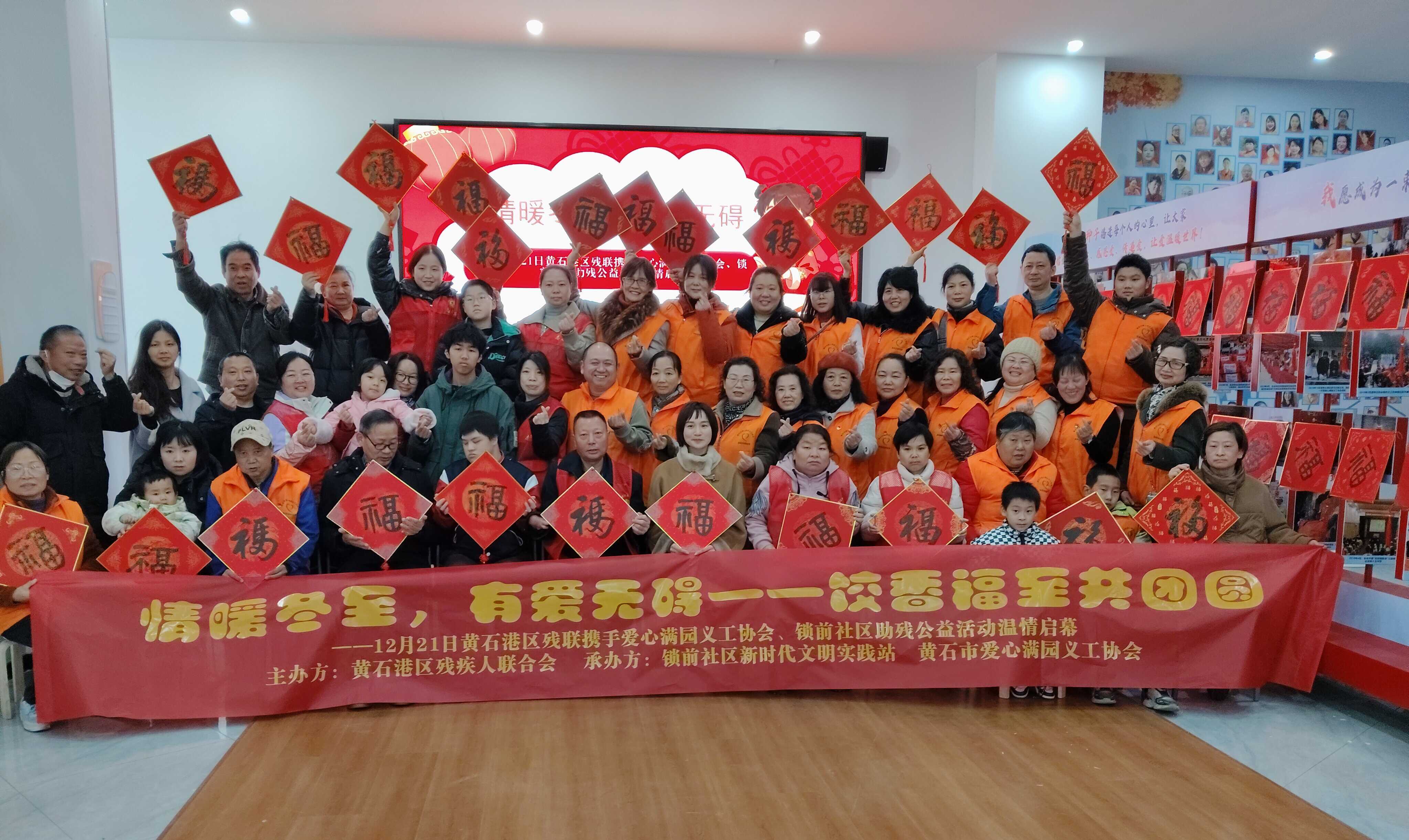 冬至阳生,岁回律转。12月21日,由黄石港区残疾人联合会、黄石市爱心满园义工协会联合主办的“情暖冬至 有爱无碍”助残公益活动,在锁前社区新时代文明实践站温馨启幕。辖区残障人士及其家属、志愿者、社区工作人员齐聚一堂,以饺子传情、以笔墨送福、以科技助力,在团圆氛围中感受冬日暖意与社会关怀。