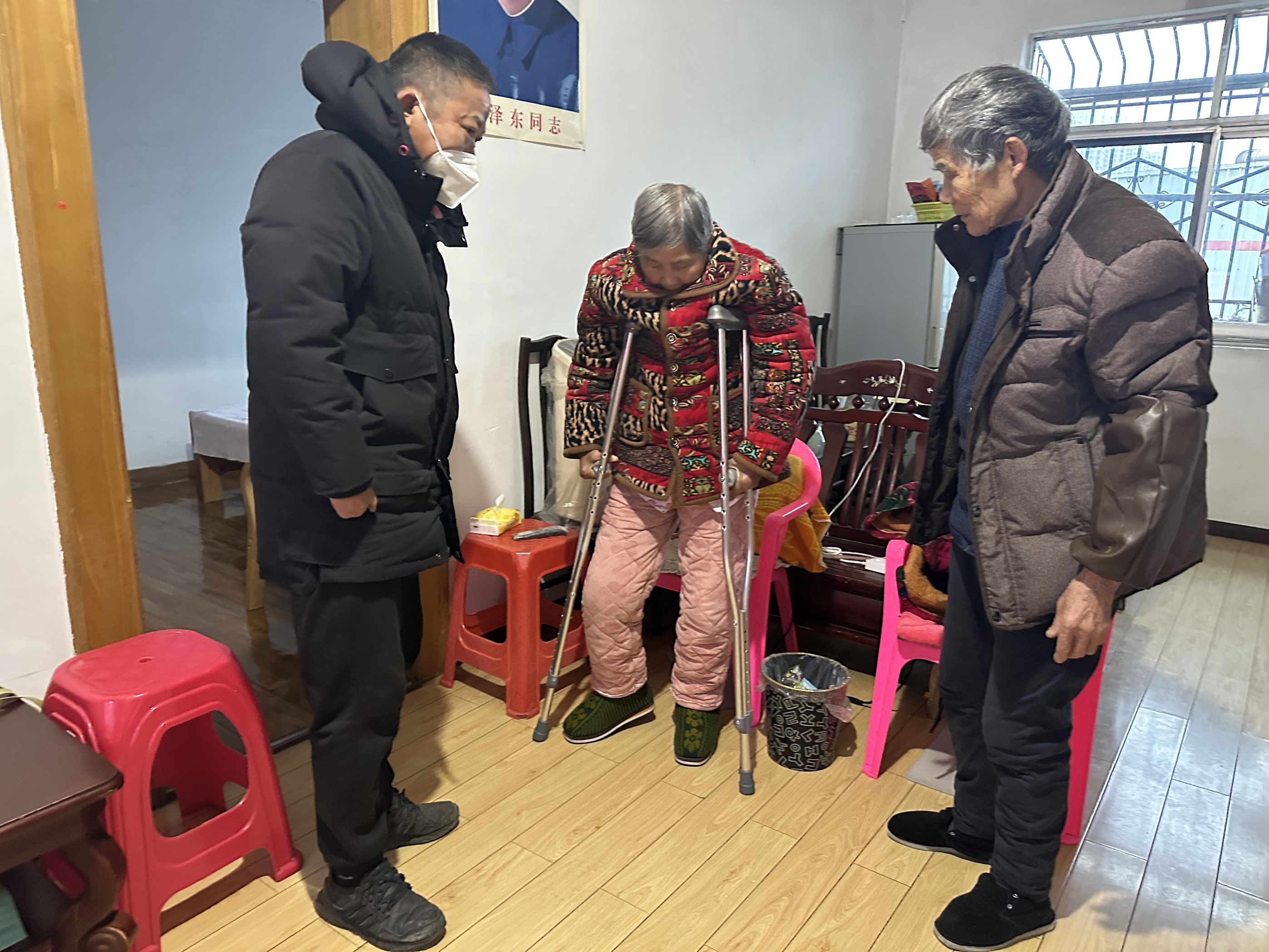 1月19日辅具刚送达,两人便第一时间送货上门。李国梁蹲下身仔细调整腋拐高度,手把手教老人及家人如何根据身形适配、如何安全行走,反复叮嘱使用中的注意事项,直到老人能稳稳站立、缓慢挪动才放心离开。从心愿表达到政策对接,从线上申报到上门教学,短短5天,黄石港区残联便让惠民政策落地见效。