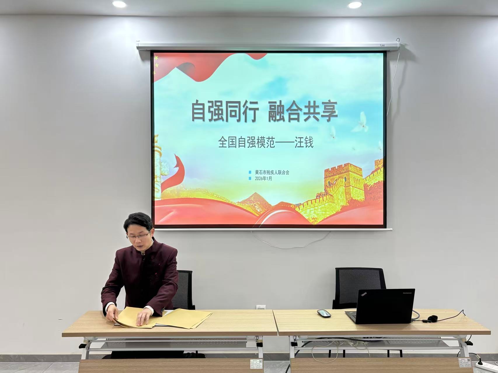 1月16日,为切实增强群团共享服务驿站的宣传效果,充分发挥其文化服务与社会融合功能,黄石市残联在市职工服务中心群团服务共享讲堂举办“自强同行 融合共享”主题宣讲活动。此次活动由全国自强模范汪钱作专题分享,来自各县市区的残疾人约30人参加。