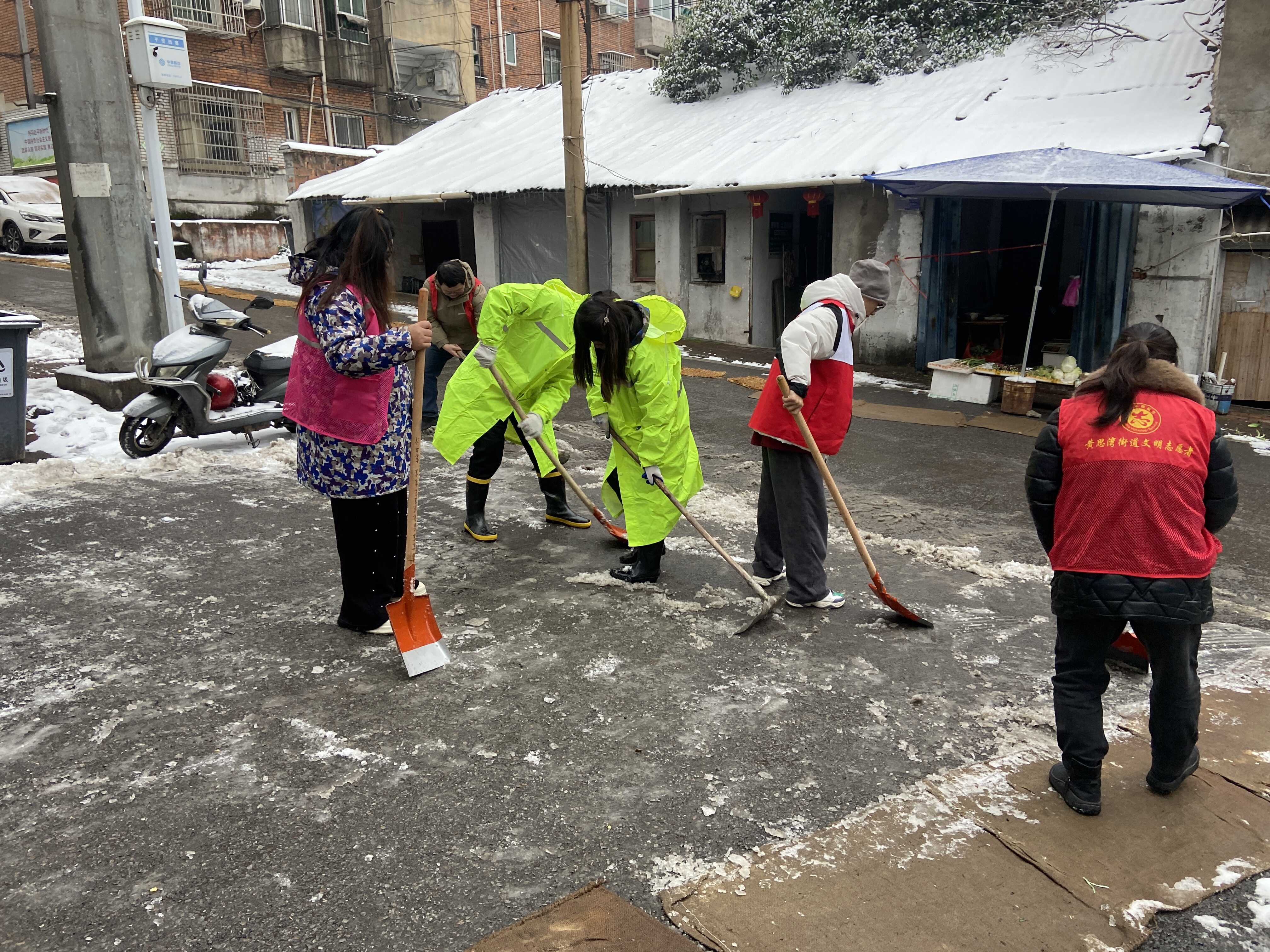 黄思湾街道残联组织志愿者为重度残疾人家庭门前铲雪除冰